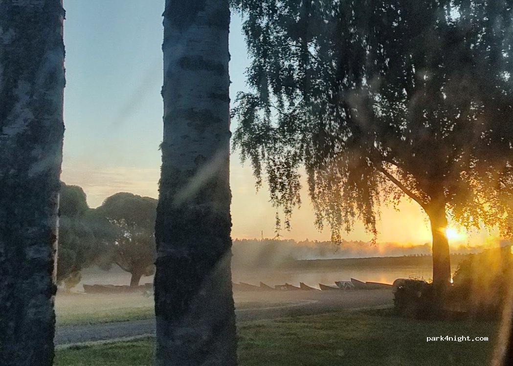 A parking spot in a scenic park just 50 meters from a lake. Enjoyed beautiful morning sunrise. There were some young people gathering in the park during the evening, but the night was peaceful. No on-site facilities, but the town center is close by. Ideal for a one-night stay.