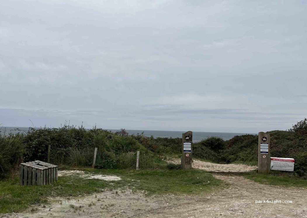 Decent top parking spot for approx 12 campers which overlooks the Open golf course of Portrush. toilets/ showers at beach side carpark opened/closed by council. Superb beach excellent for watersports and dog walks.