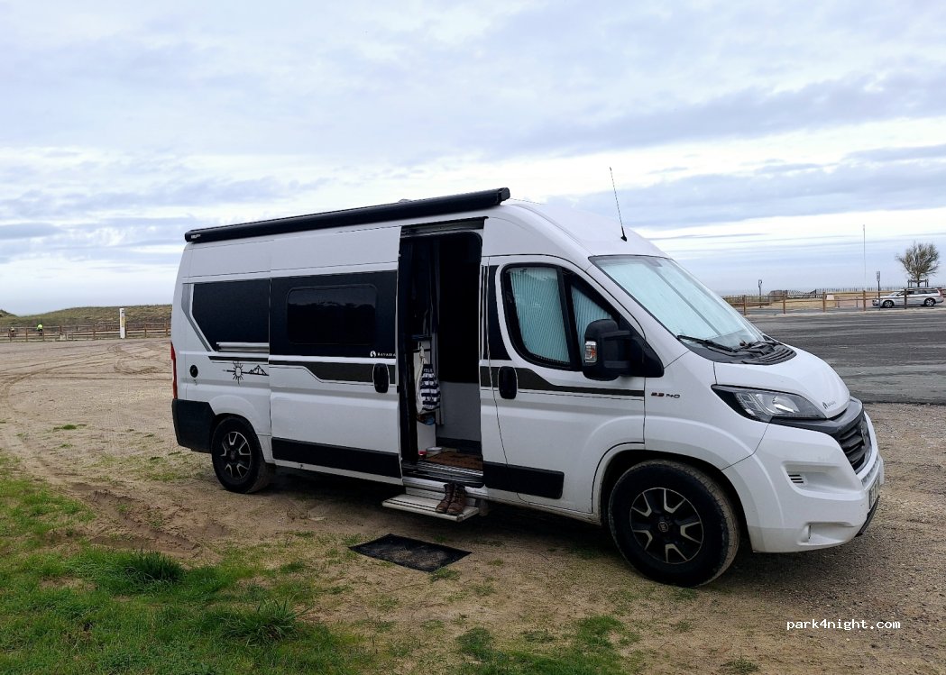 Parking simple mais efficace, très proche du centre. Parfait en hors saison : gratuit, calme et quasi-vide. Nous étions 3 CC. Un peu de passage à l’heure du coucher de soleil que tout le monde vient admirer sur la plage. Belle balade