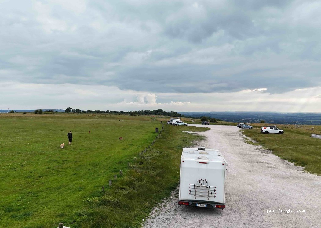 Parking situé près du site du "White Horse" (cheval dessiné à flan de colline). En journée pas mal de personnes qui viennent promener leur chien. Nuit très calme. Vue superbe sur la vallée. Attention route étroite pour y monter.