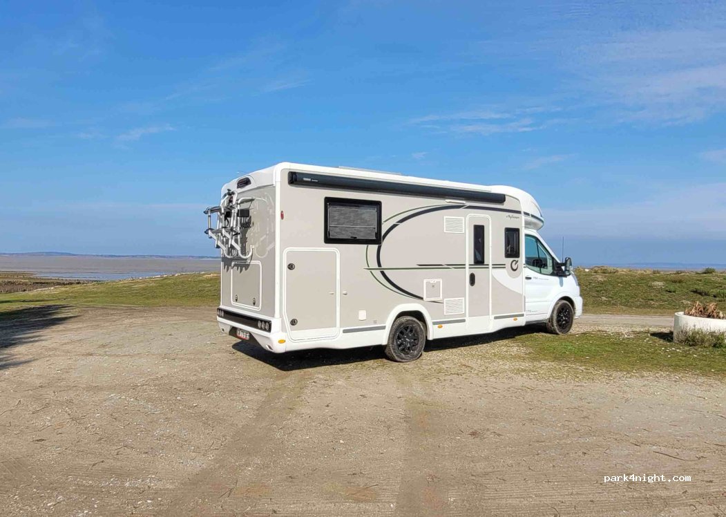 Extraordinary place on the Gironde estuary near the port of Talais (with an exceptional panorama of the estuary due to its tranquility). This is a picnic area at the end of the Talais port cycle path. You can reach it from Talais in search of the oyster farm... which alone is worth the detour: 12 very fresh oysters for 9 euros! There is room for 3 or 4 campers. the last km to get there is an unpaved road, but very accessible with any van/camper! with several locations along the way and the fishermen are welcoming.