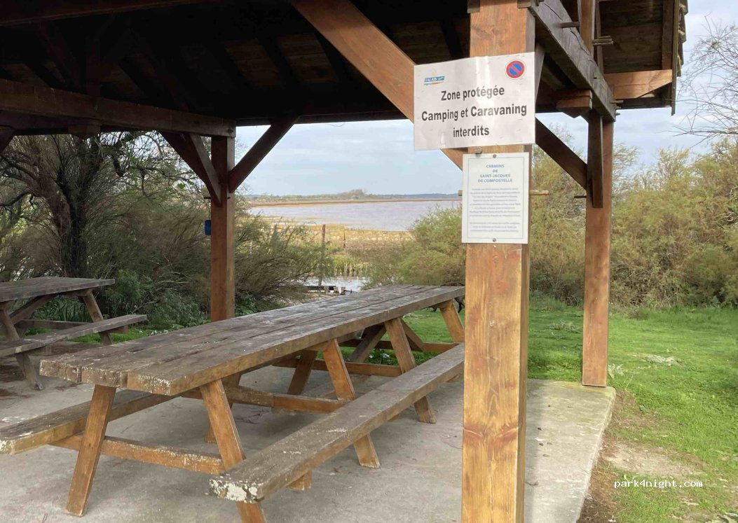 Endroit superbe, calme beau point de vue, idéal pour passer la nuit. Tables, barbecue, poubelles et cendriers que malheureusement beaucoup de personnes ne voient pas. c'est désolant se manque de respect de tels lieux. un bon producteur d huitres à proximité. En ce moment seul lieu où il n y a pas trop de moustiques .