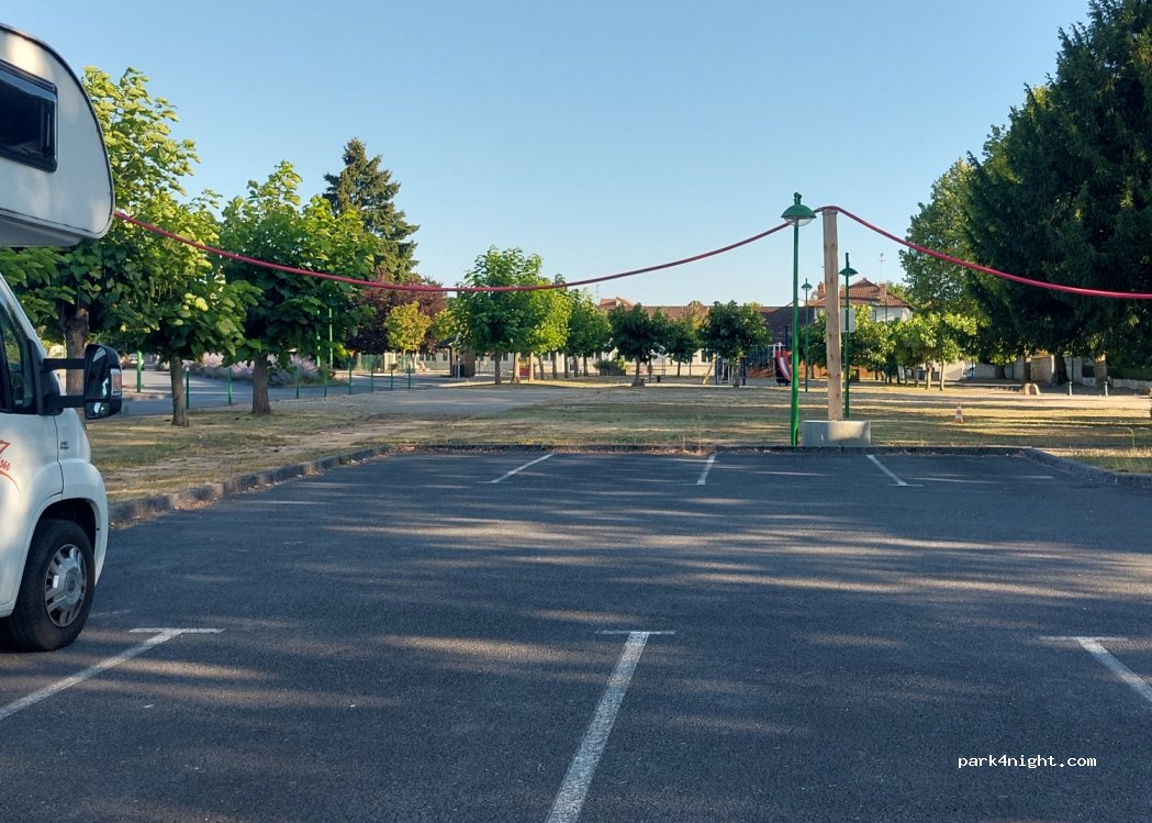 parking éclairé la nuit,proche de l'école. Nous avons passé une nuit au calme.Le mardi matin, un marché alimentaire est présent sur la place du centre-ville.