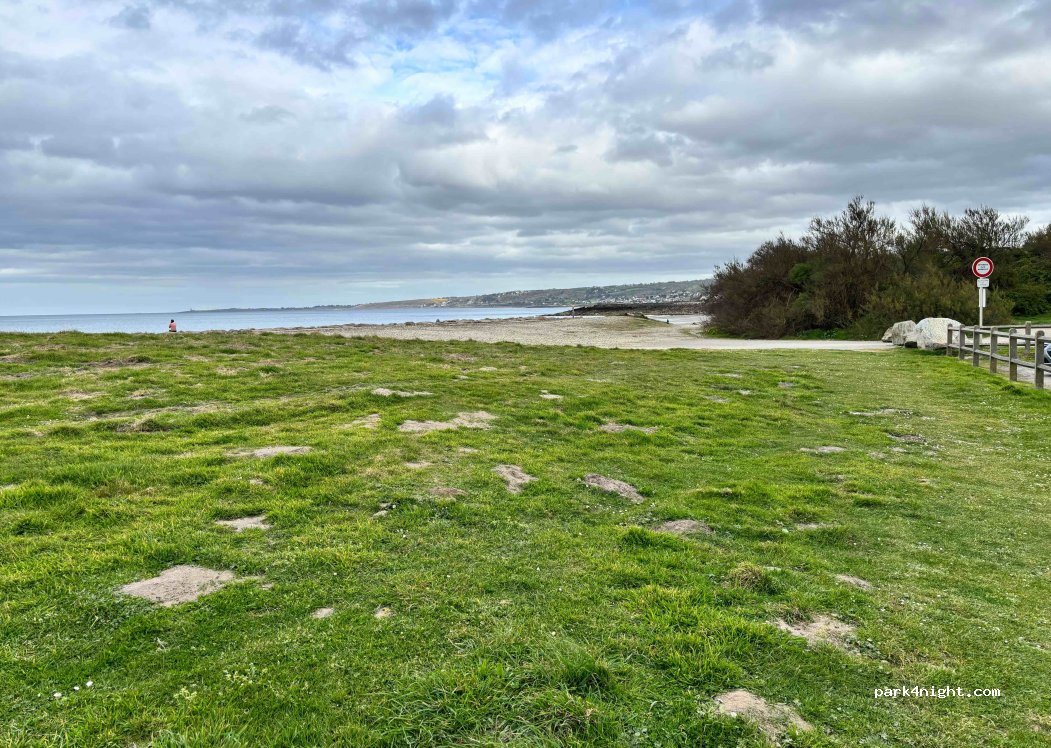 Rustige en veilige overnachting gehad. Redelijk vlakke parking, met zicht op de zee, die vooral bestemd is voor wandelaars en watersport beoefenaars. We waren met 6 overnachtende campers. Geen bezoek gehad van politie.