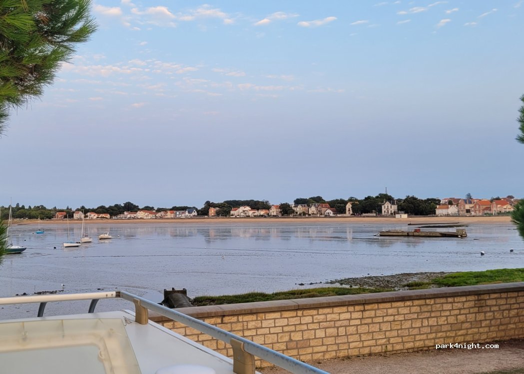 Prachtig dag- en nachtparkeren, met een parkeerlimiet van 48 uur (gemeentelijk besluit). Schitterend uitzicht, met strand en zeilschool vlakbij. Openbare toiletten in de buurt (lopen naar het strand) erg schoon maar 's nachts gesloten. Geen probleem om te parkeren met onze 7 meter lange camper die goed achteruit rijdt. Ruimte zelfs in augustus, ideaal om naar het Ile d'Aix te gaan.