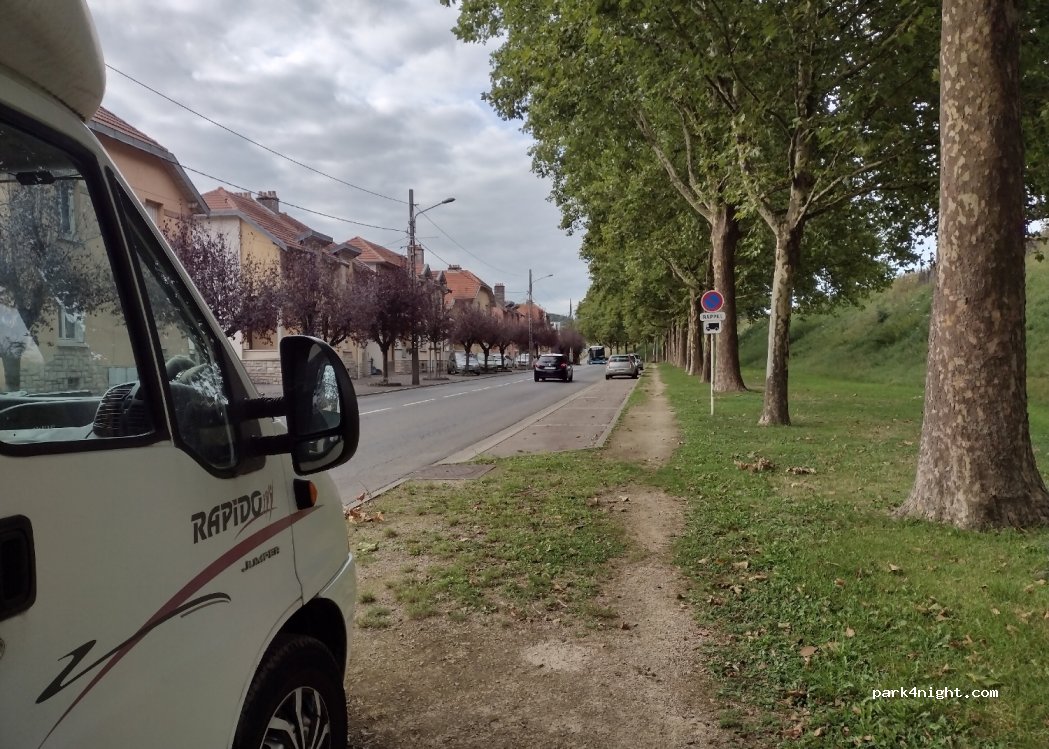 Trop juste pour un CC de 7m, ça dépasse sur la route. Donc nous avons continué notre route, et nous avons réussi à trouver une place à côté du stade, pour faire la visite de la belle basilique St Etienne.