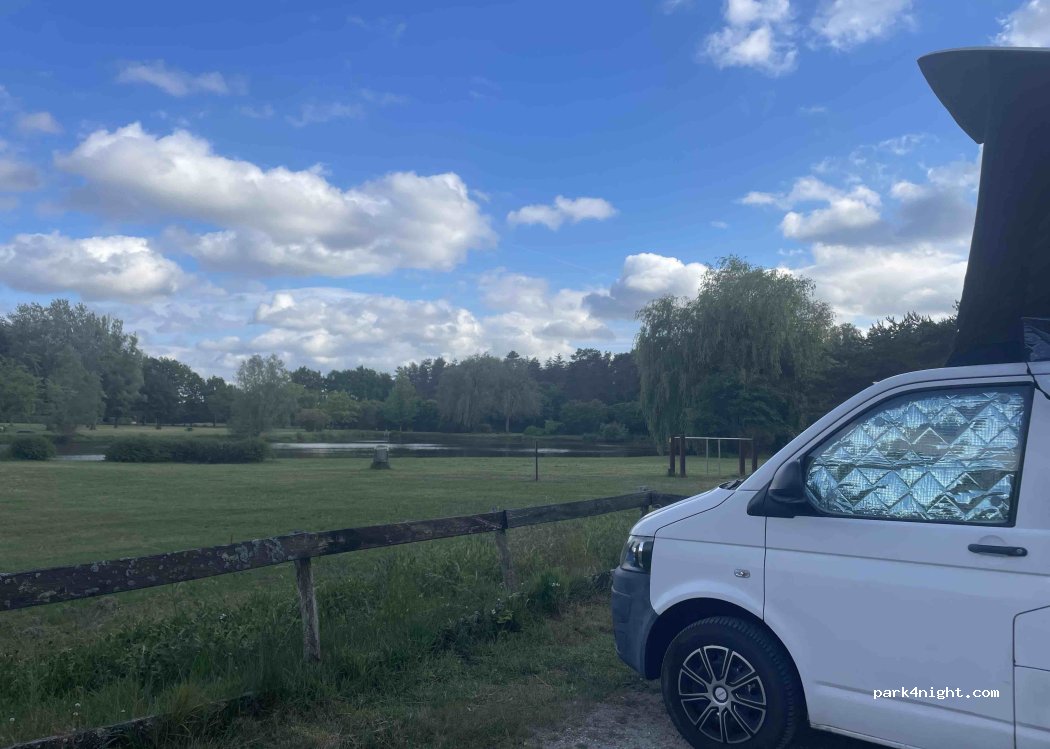 Petit parking simpa au bord d’un étang communal bien aménagé parfait pour une nuit au calme pas de feu autorisé