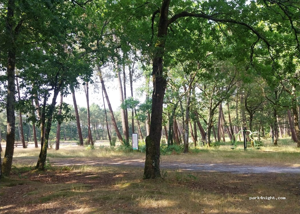 Closed and prohibited due to recent fires. The parking area is at the side of the road. It is necessary to stay in the area close to the road and not to go too much under the trees under penalty of being dislodged by the municipal police. On site Shaded corner under the trees at the edge of a large pond. Trash cans and picnic tables are available. There is also outdoor gym equipment and a mountain bike learning trail. The nearby railway line is used almost exclusively by local public transport, so noise is limited.