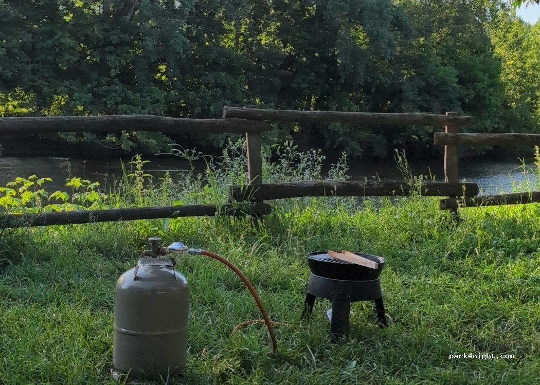 très calme, au bord de l'eau, ombragé, 2 bases de canoë à 50 m, petite epicerie et restaurant à 100m.
