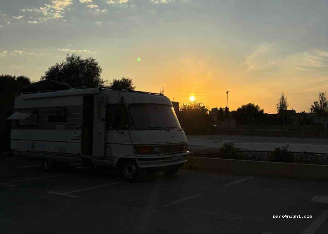 Lieu calme pour la nuit. Un grand espace pour de nombreuses stationnement. Attention… pour ceux qui sont en chambre toile au dessus, c’est un peu bruyant le soir avec le rond point à proximité et le matin coq, chien, mini moto ne sont pas discret….. mais c’est la vie urbaine.