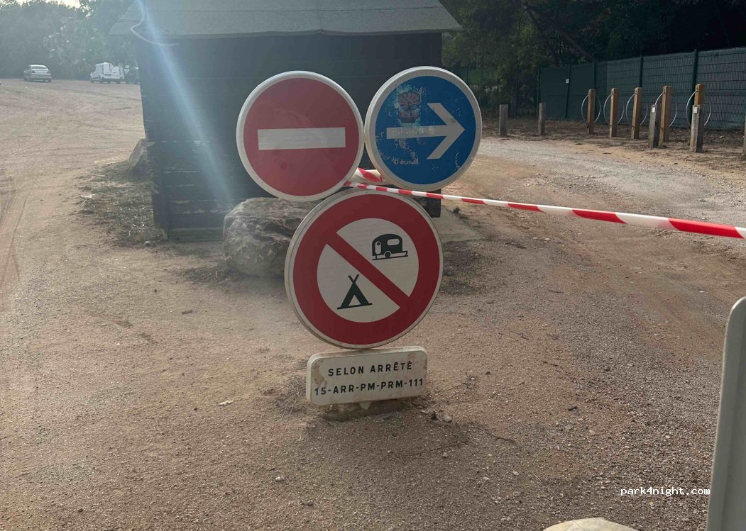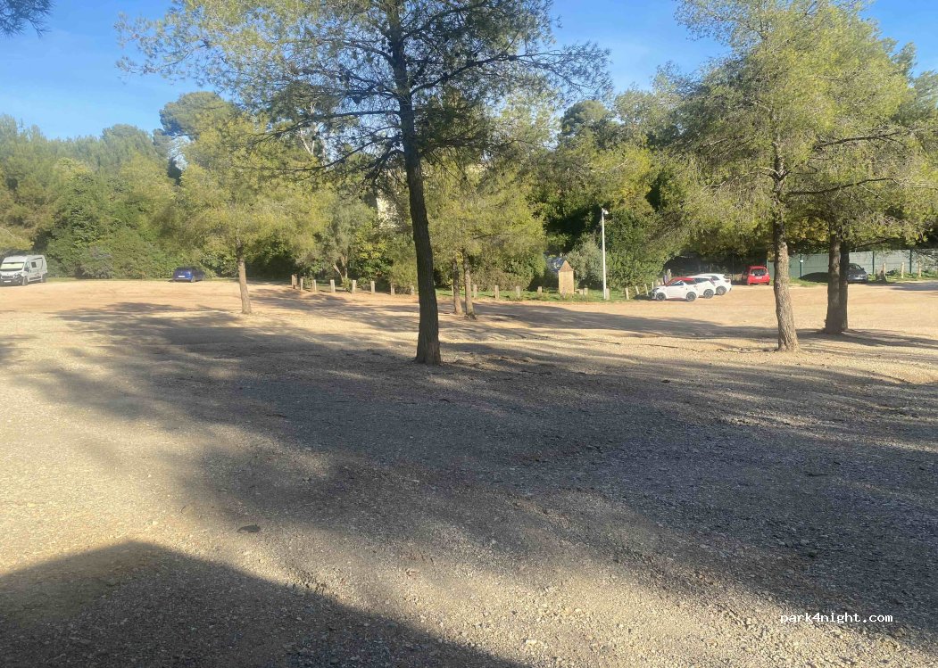 Parking avec accès direct à la plage de Monaco par un chemin sous les pins. La route d'accès est étroite. Panneaux interdisant caravanes et tentes à l'entrée. Rien pour les camping-cars n'est indiqué et la police municipale ne nous a rien dit. Terrain en pente par endroits. Très calme (nous étions seuls !), sous les arbres. Le matin, les voitures vont et viennent au fond du parking de la base de loisirs. proche du centre pour commerces, restaurants. Bien ;-) Pas de camping