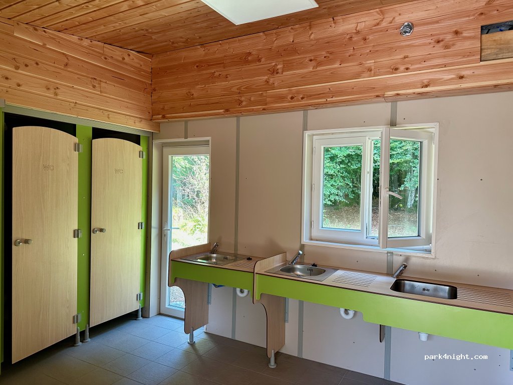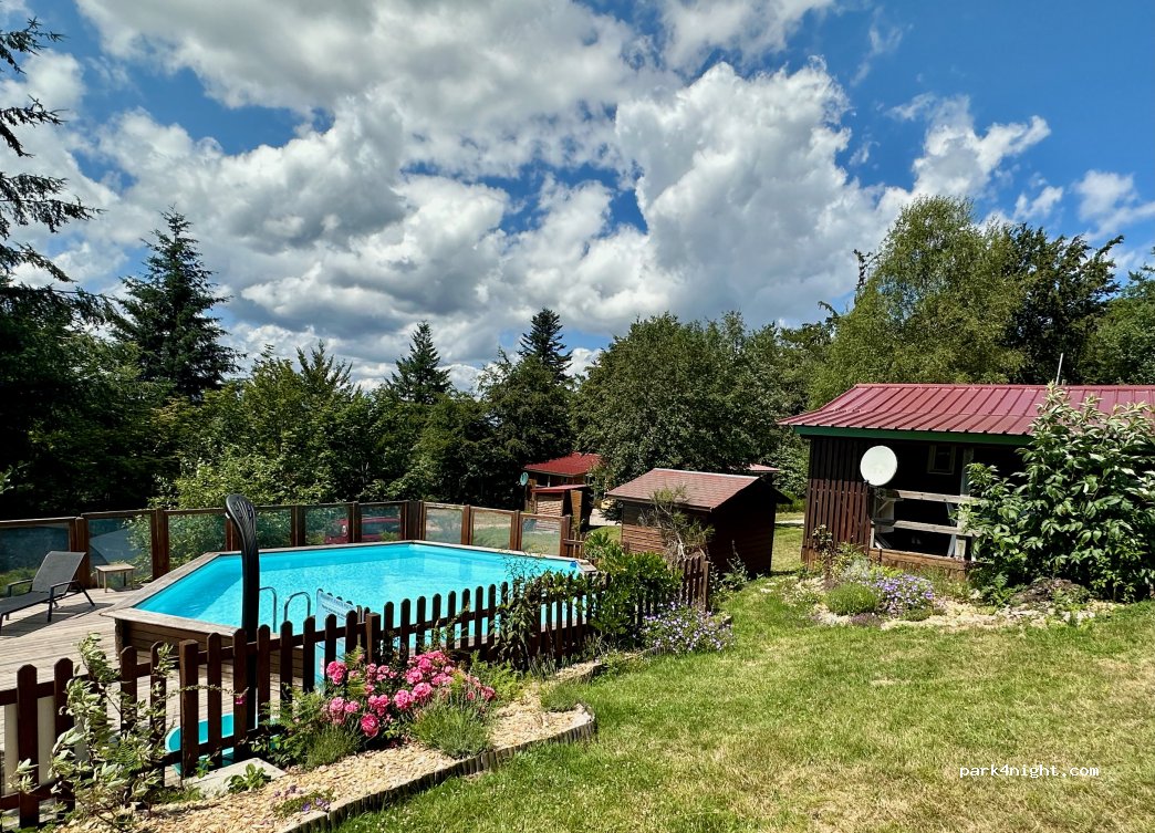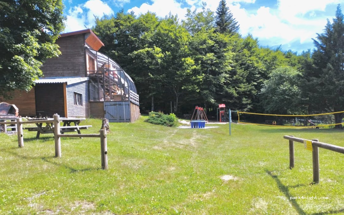 Joli cadre boisé, avec accès direct sur une hêtraie charbonnière de toute beauté, et des sentiers dont le GR3 au niveau du foyer de ski de fond. A proximité, l’allée des hêtres tortueux, la cascade de Pisserote etc. Douche bien chaude. Piscine bien agréable avec espace vert de jeux. Vidange cassette dans un cabanon. Sommes restés 3 jours!