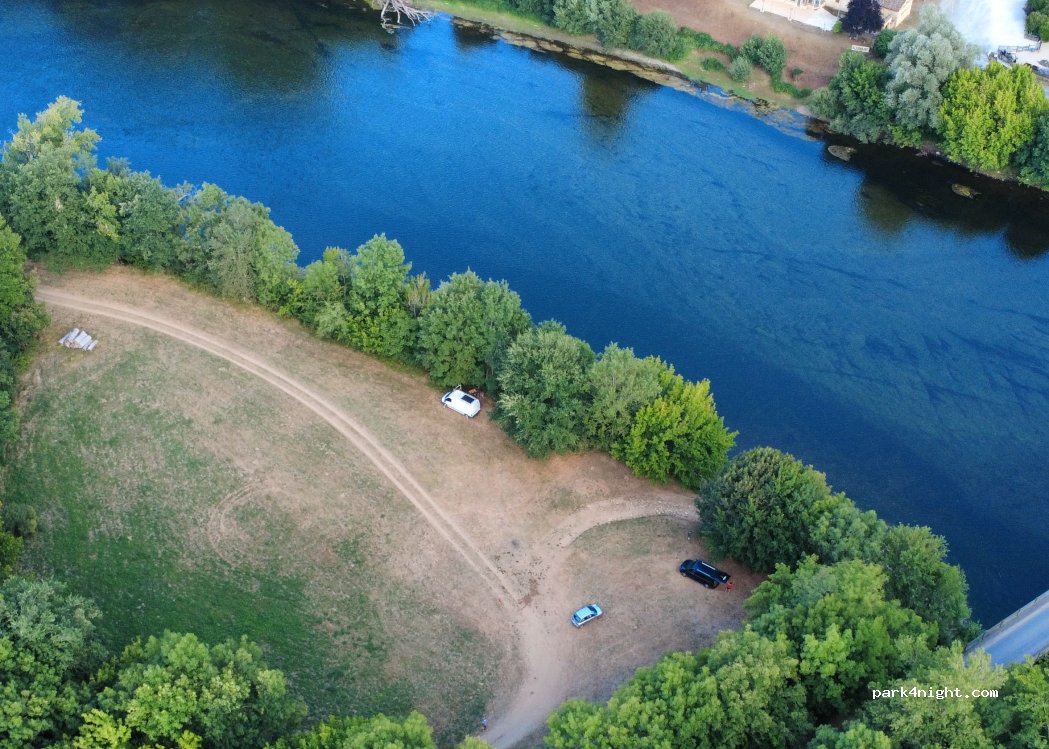 bel endroit au calme et qui donne directement sur la Dordogne. juste avant le pont tourner a gauche par un petit chemin. idéal pour une nuit