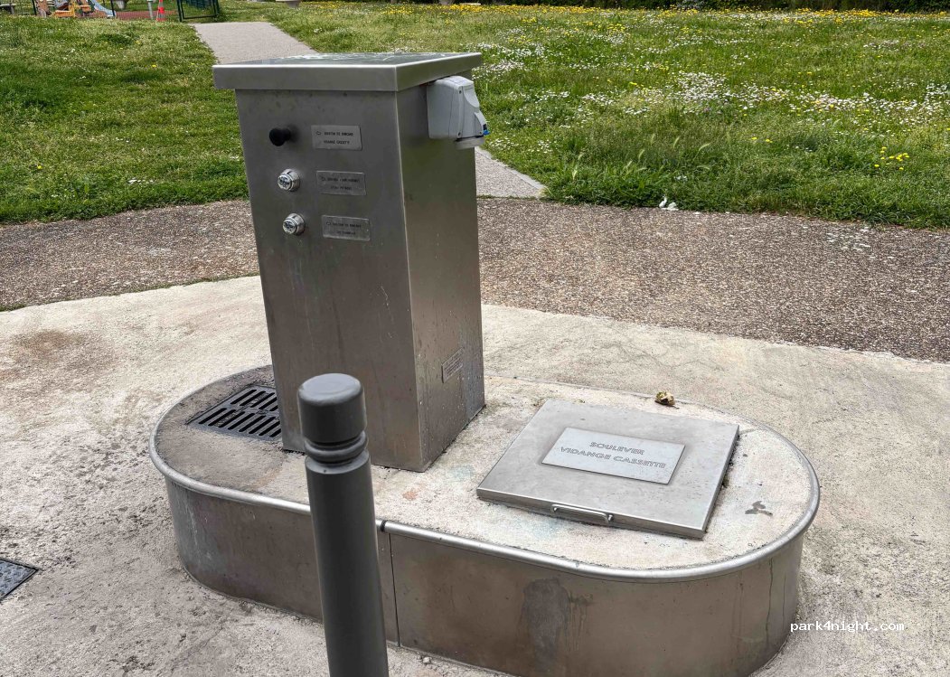 Nous y sommes passé hier, et : comme indiqué dans le commentaire precedent, pas du tout indiquée une fois sur l’aire. Sinon vidange eaux grises et eaux noires OK, mais pas d’eau pour remplir reservoir ou meme rincer cassette. Tout est gratuit.