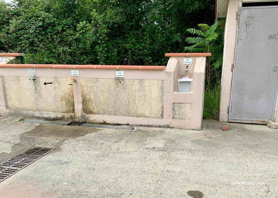 Aire gratuite mais sale, un seul robinet sans raccord avec pas de débit et il faut maintenir appuyer, bref ça dépanne, par contrées sympa pour dormir