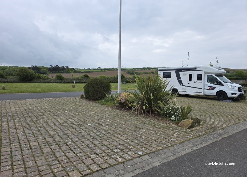 parking spacieux et confortable avec aire de jeux et tables de picnique. nuit calme et les cloches sonnent à 7h00 le matin !
