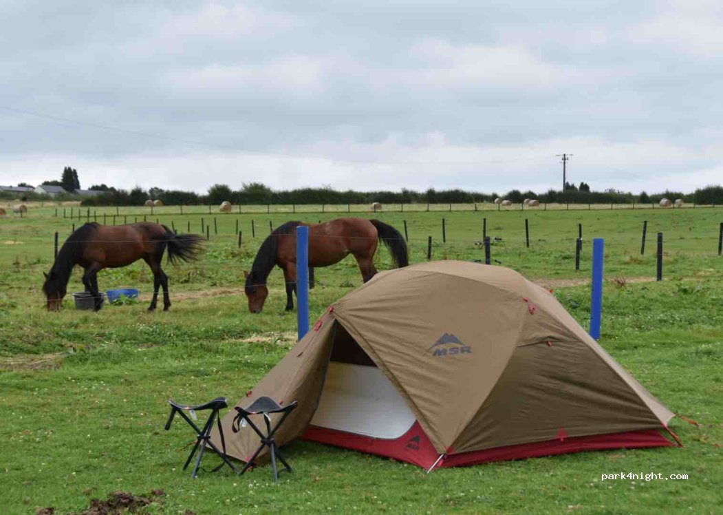 Camping à l'ancienne, dans une grande prairie à côté des prairies pour chevaux, très calme, propriétaires très sympathiques.