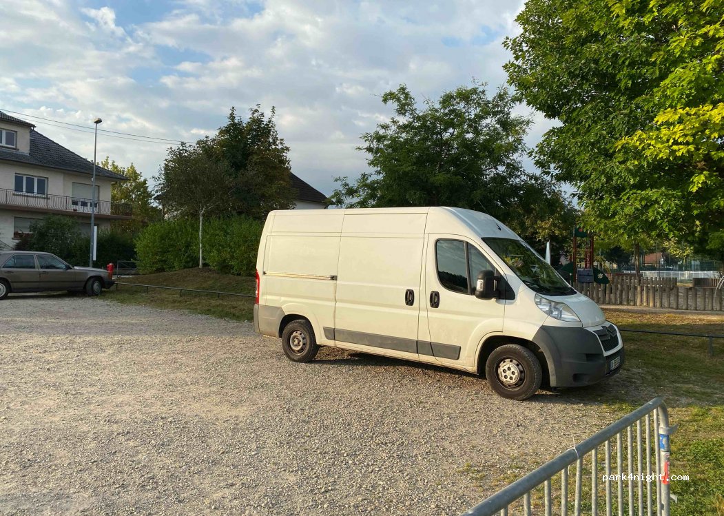 Je suis voyageuse en van et j’habite dans la rue de cet emplacement. Il n’est vraiment pas idéal d’y dormir. Peu de chance que vous y soyez au calme puisque parc de jeu, chiens, jeunes la nuit, éboueurs le matin, etc. Par ailleurs ce matin une famille avait sortie table, chaise, etc pour le petit dej. Vous êtes en zone semi urbaine, il y’a des dizaines d’autres spots dans les champs plus adaptés