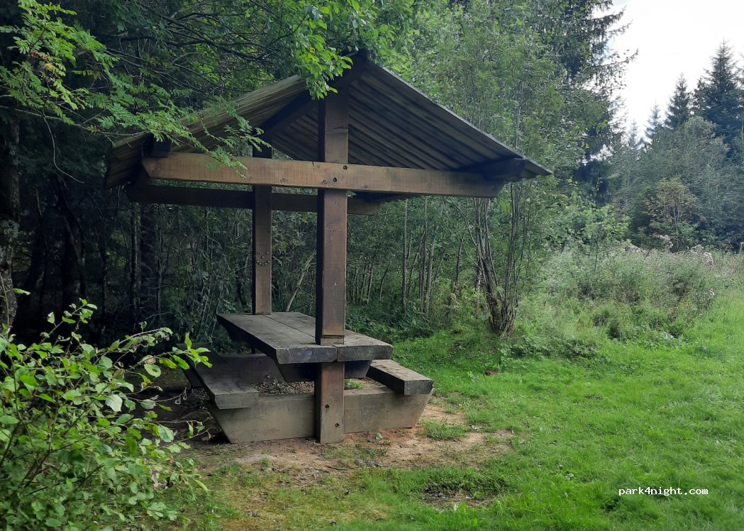 Small corner at the edge of the forest at the start of cycling and hiking trails. ideal for a picnic