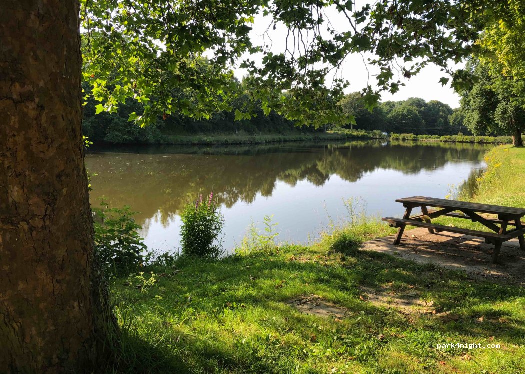 Small quiet corner on the edge of a fishing pond. Picnic tables and 3/4 self-service barbecues. Dry toilets a little hidden at the bottom of the lake. Several parking possibilities, more or less flat. I advise you to continue straight after the crossing a small car park is hidden behind the trees on the left (photo 3). Provide wedges, mosquito repellent in season and fishing rod! :) Very calm. (Bakery, tobacco and supermarket in the village 15min walk.)