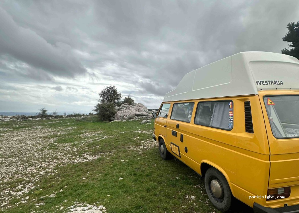 Je viens d'y passer deux nuits. superbe vue avec par deux fois un magnifique lever de soleil. pas mal de place, arrivé tôt j'ai pu choisir mon emplacement. 2 autres véhicules sont arrivés pour passer la nuit. nuits très calme. des rapaces, des parapentes, au loin la mer et de quoi faire de la marche autour. je recommande sans hésitation. 4G SFR sans problème.
