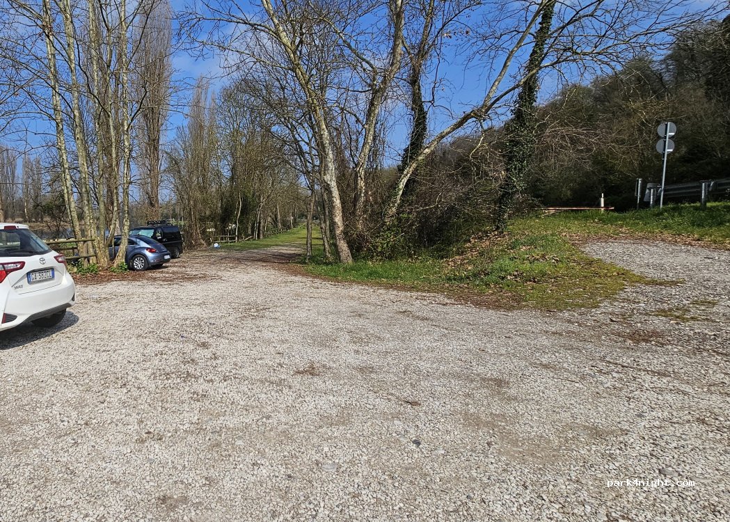 Ein inoffizieller Parkplatz direkt an der ruhigen Mincio. Hat viele Fischer morgens, aber die stören nicht und es ist auch super zum Egli-Fischen. Eher viel Verkehr an der Hauptstrasse, doch nachts eigendlich ruhig.