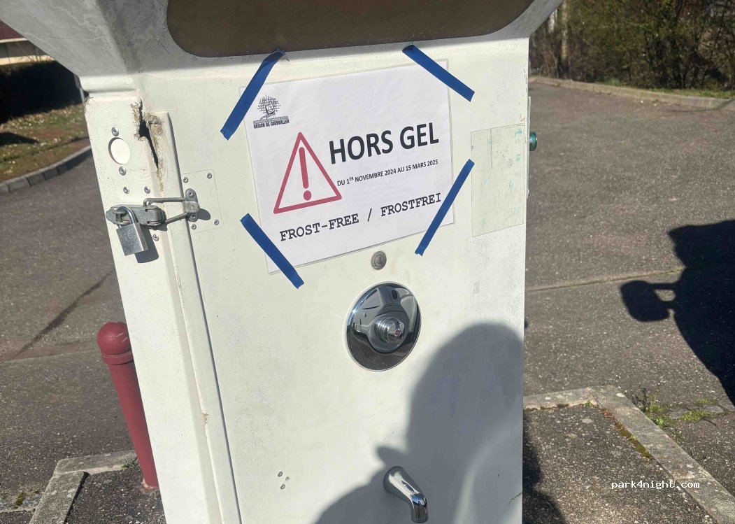c est pas là panacé mais ça fait le job pour dormir....c est silencieux la nuit et je ne demandais pas plus....pas testé l eau ni l electricité....mais je reviens de la Bavière et de l Autriche où t a pas d endroit, pour ne serais ce que te poser dormir te recharger en eau et passer un bonne nuit...,alors merci a la municipalité pour ce p4n vert qui a le mérite d exister ....