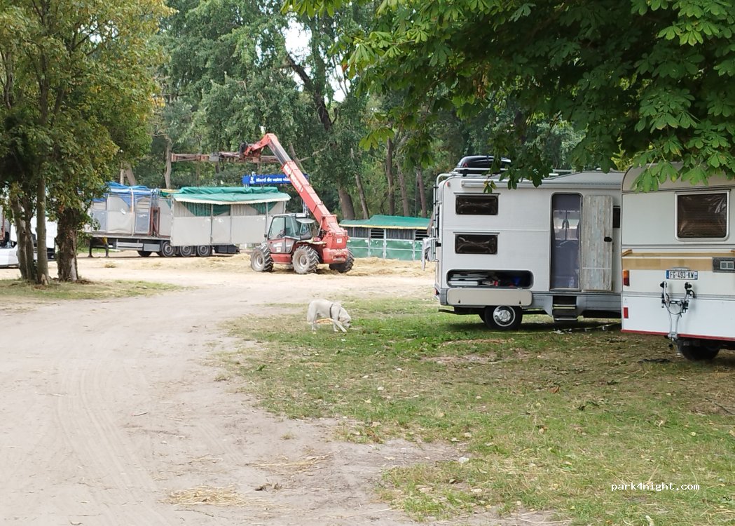 Très très grand parking. Calme et plat. Juste à côté de l'hippodrome mais aucun bruit la nuit. Aucun service. 11€ pour 23h.