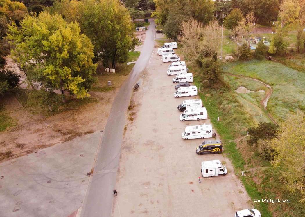 Il s’agit du parking de l’hippodrome. Possibilité de vider les eaux grises et de se charger avec de l’eau propre. Belles ballades à faire autour de l’étang. Pas franchement en centre ville mais pas trop loin non plus. 11 euros les 23h00 c’est excessif car il n’y a aucun entretien de l’espace. Ça dépanne pour se poser. *MotorClaude*
