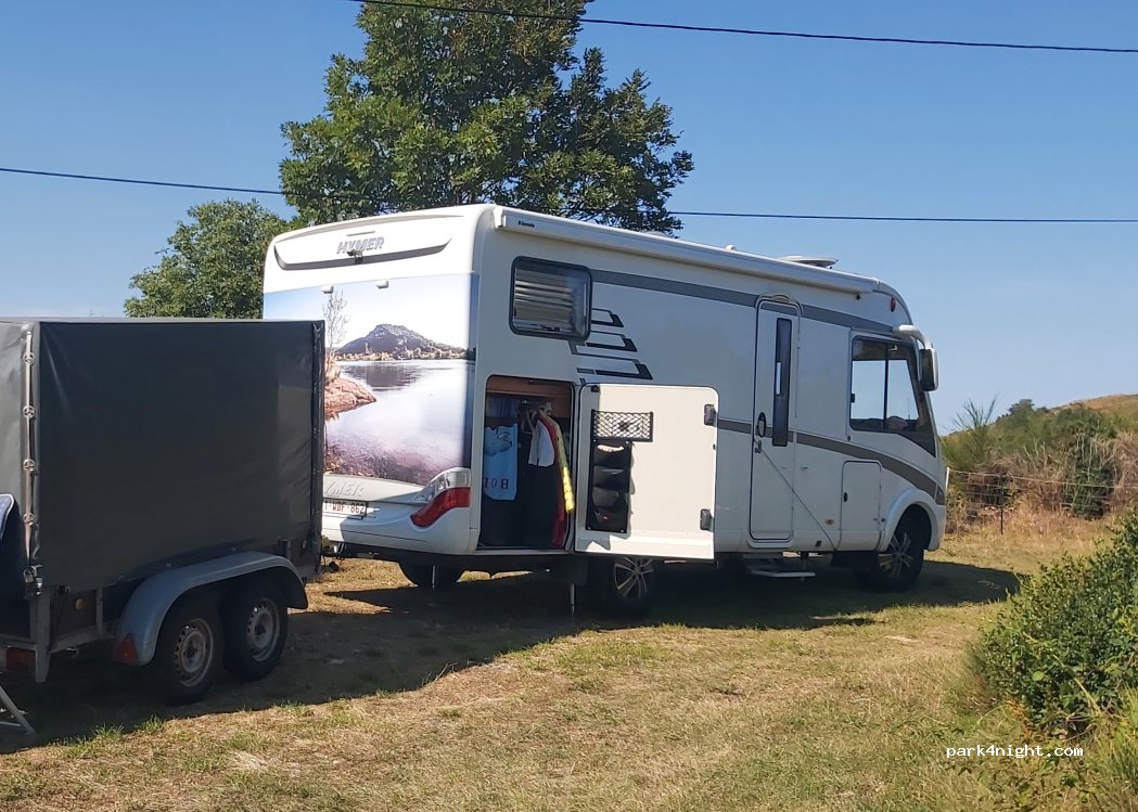 • Prachtig uitzicht en een goede plaats. Beetje steil om er te geraken maar het gaat, zelfs met mijn aanhanger. De hond heb ik maar twee keer gehoord, de aéoliènnes daarentegen de hele nacht door, zoef zoef zoef... Komt natuurlijk door de windrichting. De avond van aankomst niemand gezien maar de volgende morgen was de eigenaar heel vriendelijk, we hebben er wat specialiteiten gekocht.