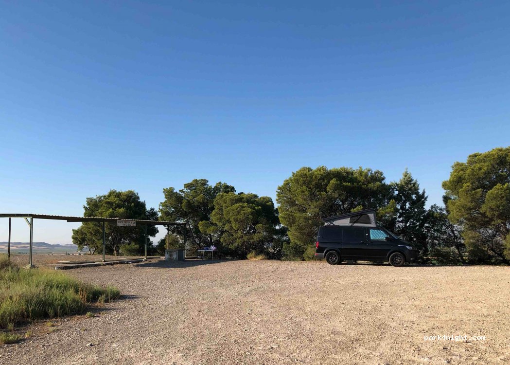 Vous ne pouvez pas louper le lieux on le vois depuis la route petit chemin. Nous avons trouvé une place près de paraboles protéger du VENT. Belle vue, sinon il n y a rien, pas d eau. Parfait pour une nuit. Pas de mouches trop de vent. Par contre dommage, les gens du coin doivent tirer au balle trappe, il y a plein de vieilles cartouches vides, c est comme les mégots. Aucun respect des lieux.