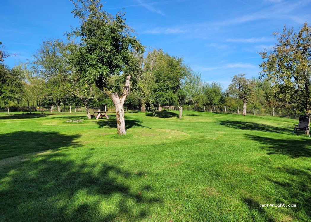 Kleiner Camping auf einer Wiese mit Obstbäumen. Freundlicher Besitzer, welcher uns empfing und sich persönlich bei uns vorstellte. 1 Nacht, 2 Pers. und ohne Strom: 15.-€ Sanitäranlage ist eine Barracke mit 2 Duschen und 2 Hocktoiletten - sind jedoch sauber.