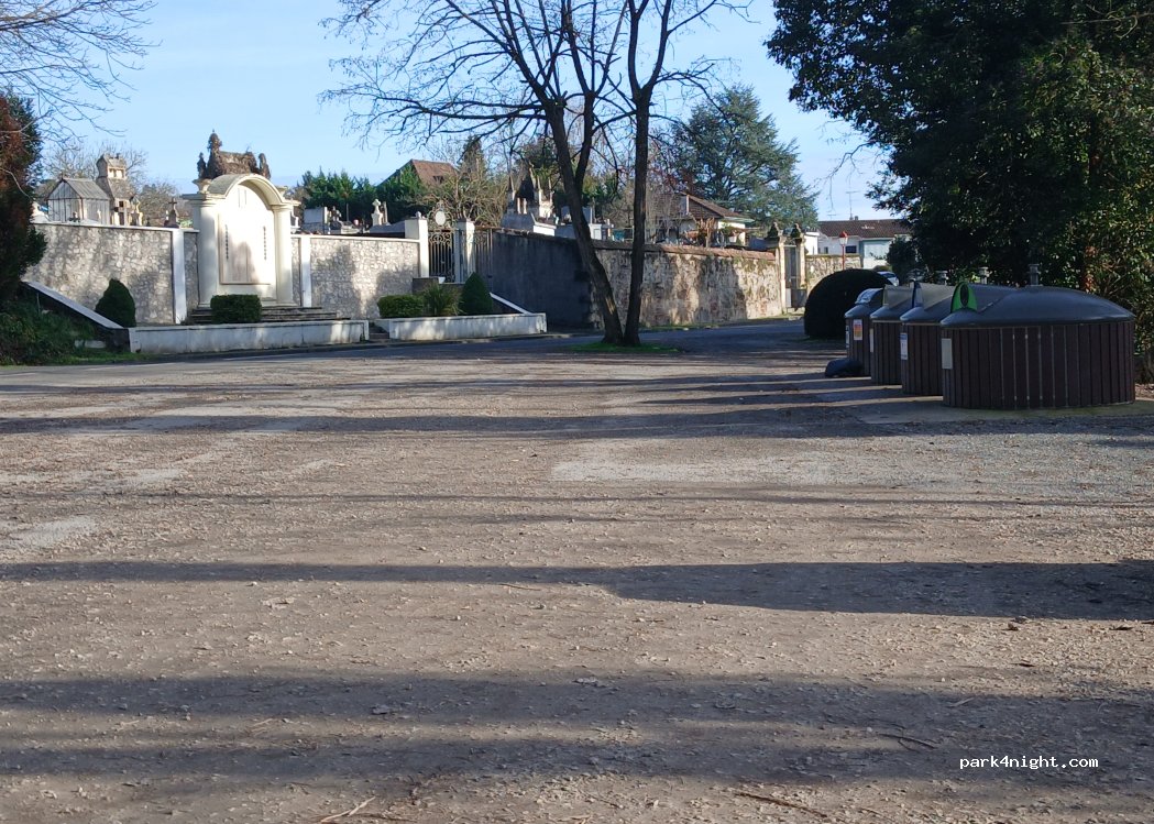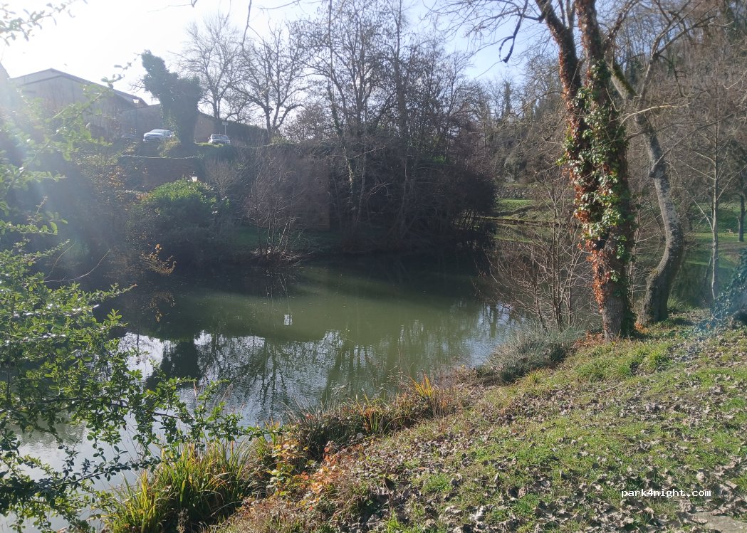 Service area rue des Rempart Montfort, shaded on the edge of Casseneuil with bollard, free parking - facing the cemetery parking and next to river, 300 m from the shops.