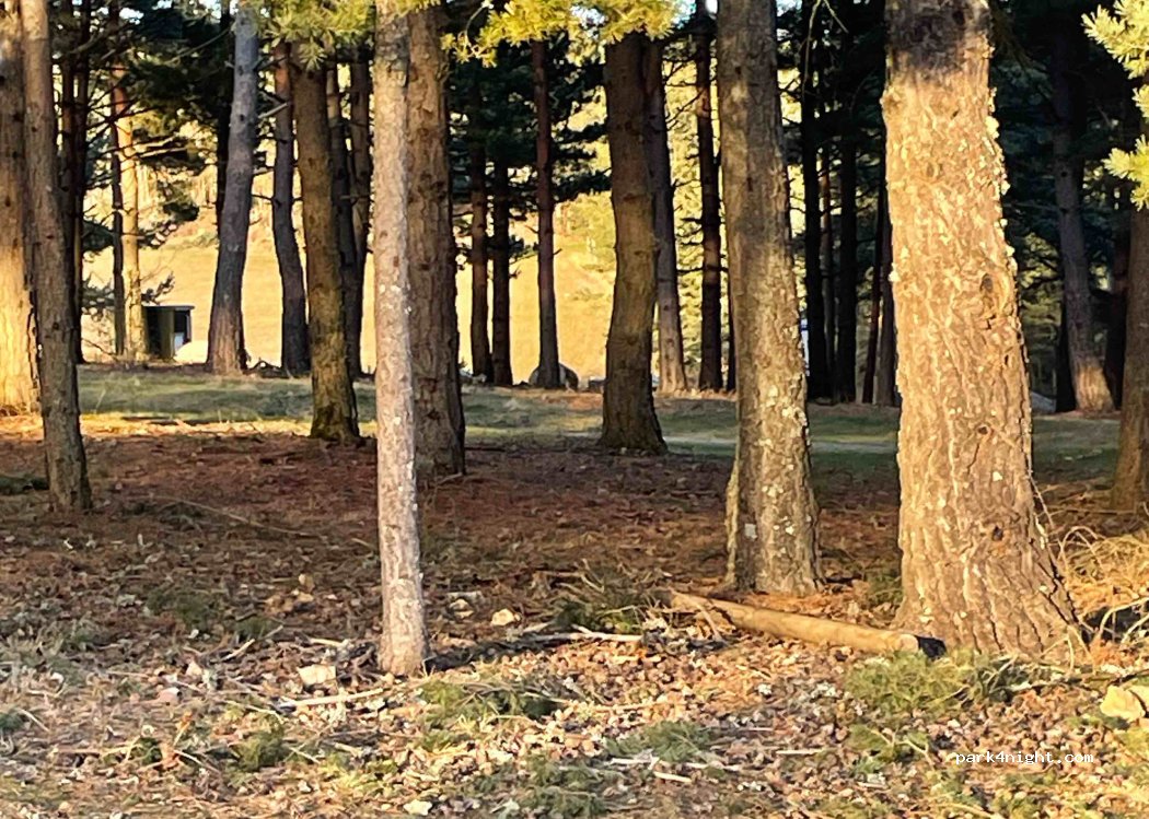 Belle aire très calme. Stationnement horizontal en terrasses, spacieuses dans les pins, bien éclairée la nuit, avec une très belle aire de jeu pour les enfants.