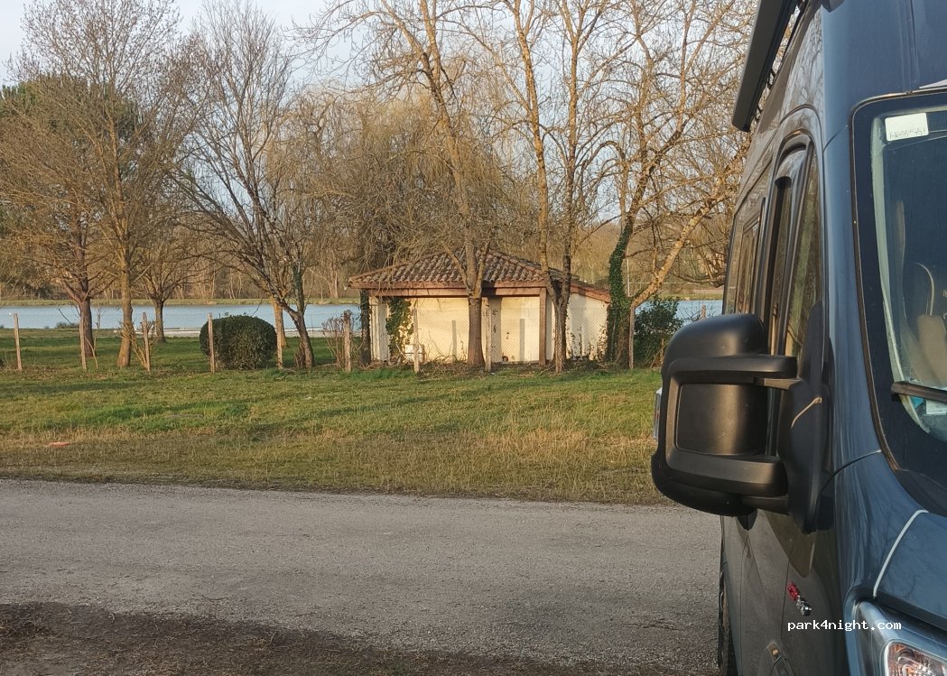 Parkplatz der nautischen Basis. Für Fahrzeuge einschließlich Wohnmobile geöffnet. Keine Schranken oder Höhenbeschränkungen. Keine anderen Dienstleistungen als Mülleimer. Bar und Restaurant während der Hochsaison geöffnet.