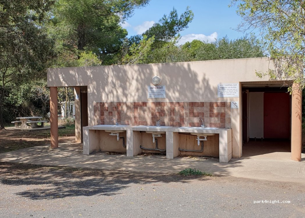 Aire de camping car pratique car elle est prêt de la sortie Béziers sur l’A9. 10 euros la nuit. Attention l’aire ferme ses portes à 22h. Toilettes et douche sur place. En revanche pour ceux qui veulent dormir le matin, pas possible car terrain de moto cross à côté. (Samedi matin c’est les entraînements à partir de 8h.)