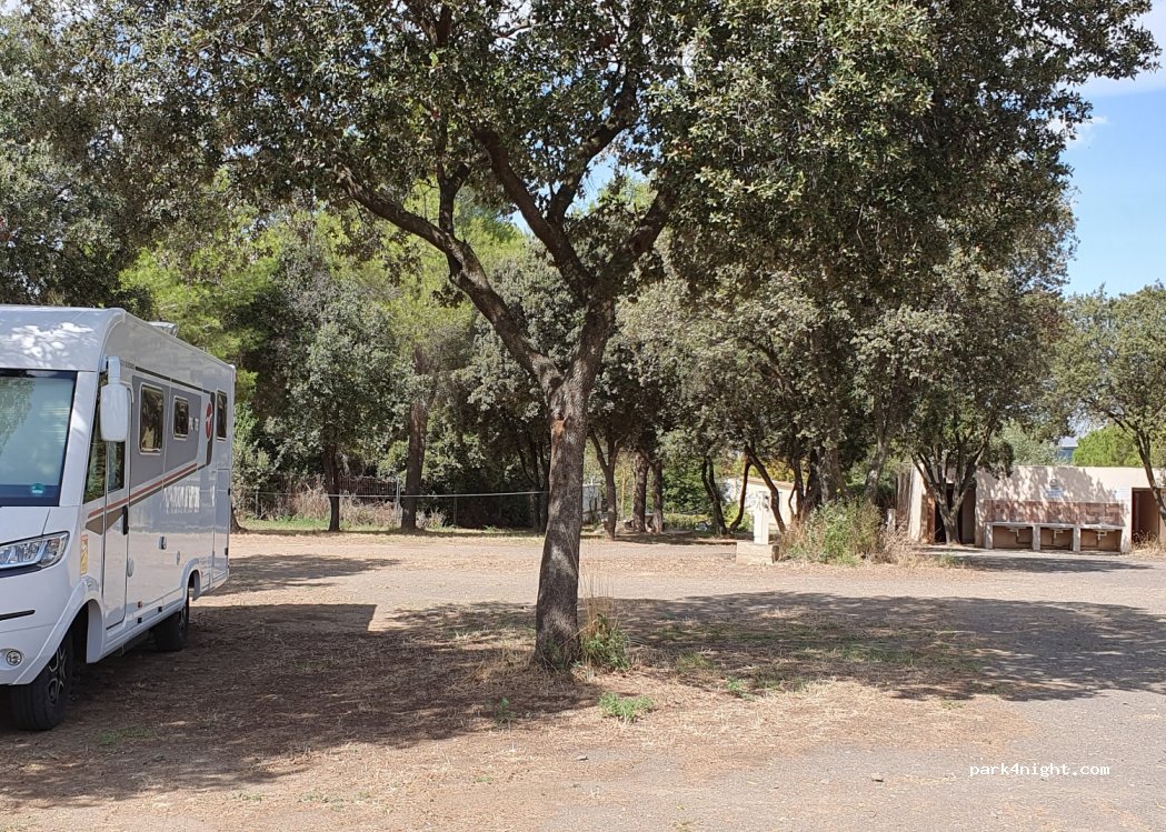 Motorhome area. Services included (water and electricity). Right across from a motocross track. Not selling a dream. Far from everything. Impossible to empty the gray water. There is no one, just someone who comes by in the evening to charge those who are installed. Prohibited to vehicles over 10 meters (including trailers).