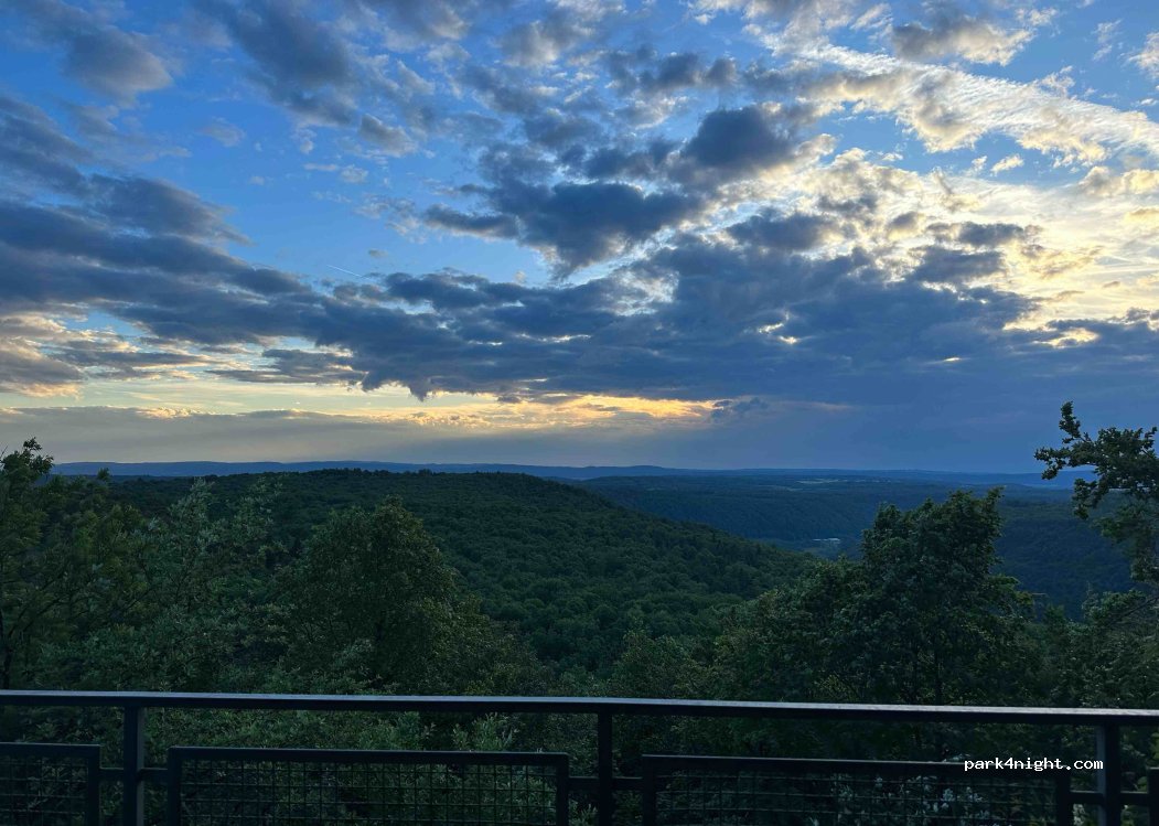 Endroit très calme pour la nuit. Plusieurs endroits le long du chemin: un avec une vue magnifique (3/4 places) d’autres un peu en pente en continuant sur le chemin et beaucoup plus de places au bout du chemin, départ de randonnée à partir de la cascade Saut de la forge.Les randonneurs arrivent entre 9h et 10h. Au cœur de la forêt mais quasiment sans réseau.