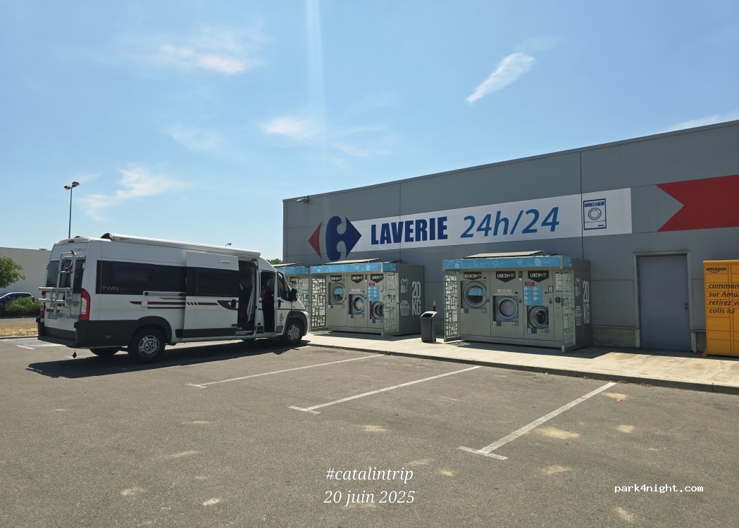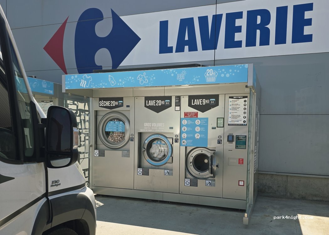Il s'agit bien d'une laverie (linge). Effectivement il y a bien une station de lavage de camping-car mais elle est plus loin, à côté du BurgerKing...