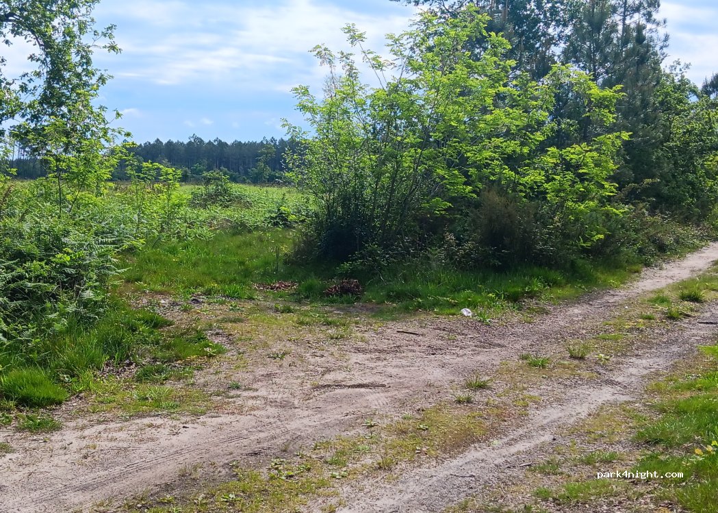 At the bend of a path, close to the road but not overlooked. sandy road for a few meters, then plant cover