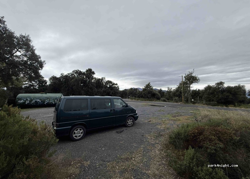 Zone de gravier avec beaucoup d'espace et de belles vues. J'y ai passé 1 nuit. Très éloigné. Je n'ai vu aucune autre personne ou voiture là-bas. Quelques maisons disséminées à flanc de montagne. Mais je n'ai eu aucun problème ni perturbation pendant mon séjour. (La route est très étroite à certains endroits probablement trop étroite pour un camping-car mais ok pour les petites fourgonnettes)