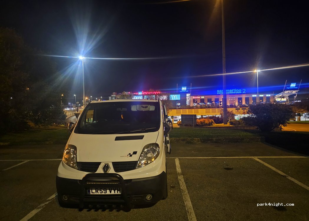 Large car park in a shopping center, illuminated at night, just a few minutes from the Novara Ovest exit, no service, ideal for a one night stop. open 24h / 24. within walking distance of the shopping center, restaurants, post office, tire shop, petrol station and dog area.