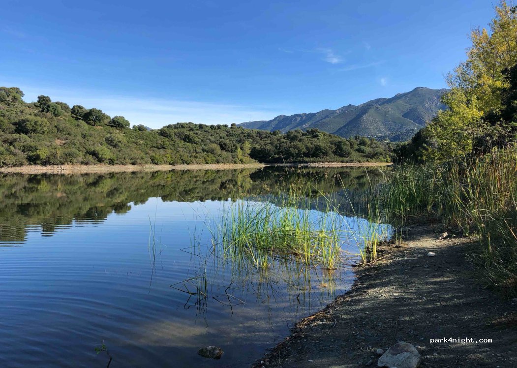 Parking en graviers en bord de route peu passante. Bord du lac de Padula.