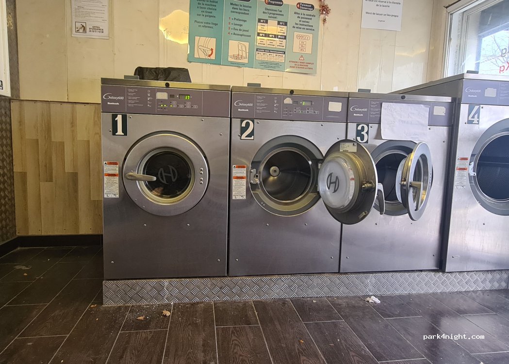 Petite laverie automatique, 4 lave-linge et 2 sèche-linge. Grand parking à proximité. Deux minutes à pied d'un grand Carrefour. Peut être payé avec des billets et des pièces, pas de carte. Mais la machine rend la monnaie.