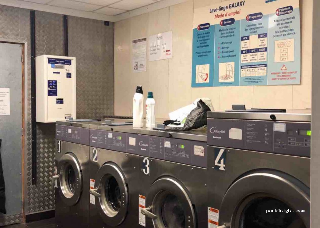Little automatic laundry, 4 washing machines and 2 driers. Big parking nearby. Two minutes walking to a big Carrefour. Can be paid with notes and coins, no card. But the machine gives change.