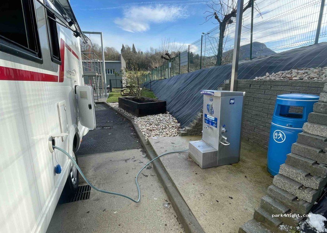 Tout y est ! Eau TOUTE l'année, vidange eaux grises et WC, aire de lavage avec passerelle pour le toit, machines à laver, sèche linge... Et en prime un patron sympa et aux petits soins. On recommande vivement !