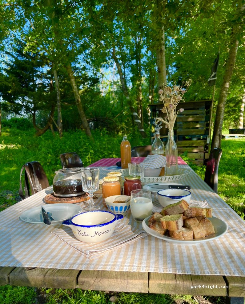 On avait un accueil très chaleureux de la part d'Olivier. Derrière sa ferme on avait beacoup de place que pour nous. Des palettes en bois upcyclées deviennent des meubles de jardin, sur lesquels nous avons été servis un délicieux petit-déjeuner. Merci beaucoup, c‘est vraiment une place recommendée, aussi avec des activitées animées par Olivier (des balades dans le marais, des ateliers d‘art etc).