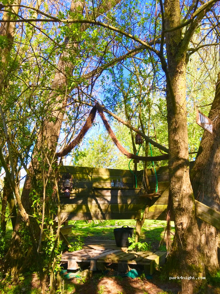 Een veilige, beschutte, schaduwrijke en rustige plek onder de populieren, inclusief: