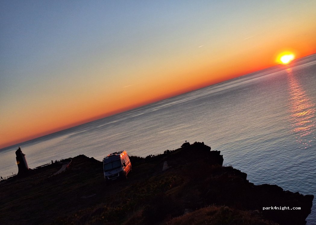 je kunt er op 2 plaatsen staan wij hebben pal naast de weg gestaan plaats voor zes campers zodat je over de zee kijkt, 40 meter hoger kun je ook staan Met ongeveer zes campers. wandelen vuurtoren kijken rust.. van verkeer geen last gehad. geen voorzieningen.