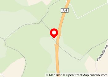 Nur ein kleiner Autobahnbereich, mit einem oder zwei Tischen, aber mit einer großen Wertstofftonne.